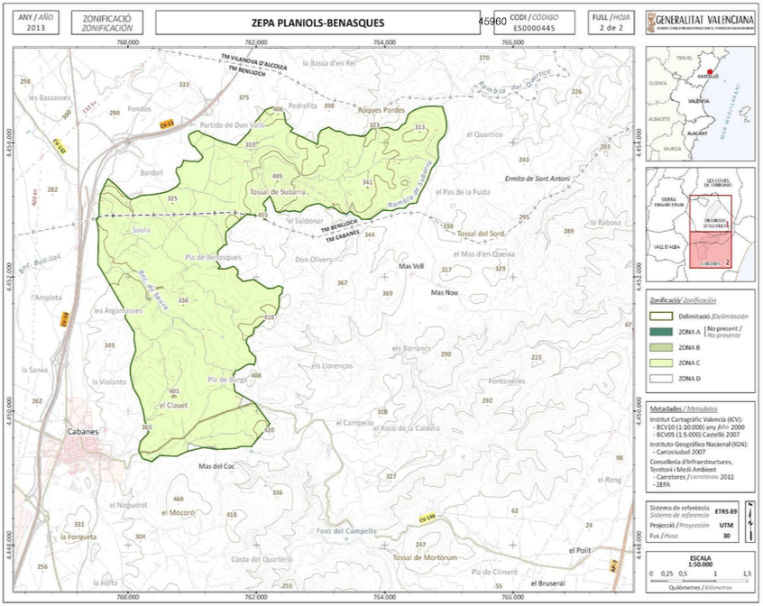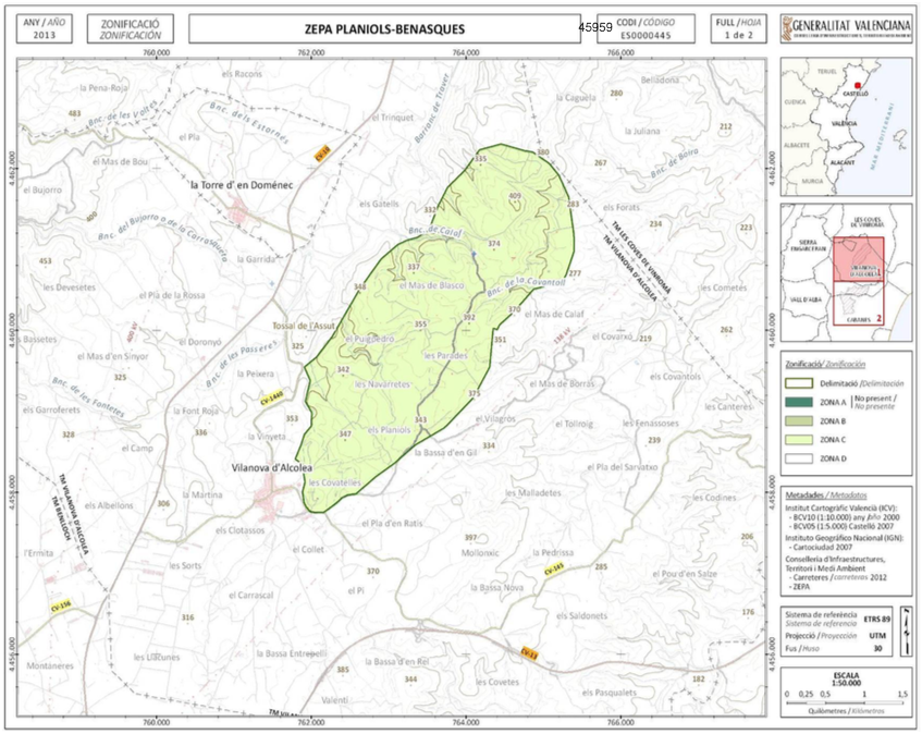 La Conselleria d’Agricultura, Medi Ambient, Canvi Climàtic i Desenvolupament Rural de la Generalitat Valenciana declara Benlloc com a Zona d’Especial Protecció per a les Aus (ZEPA Planiols- Benasques).