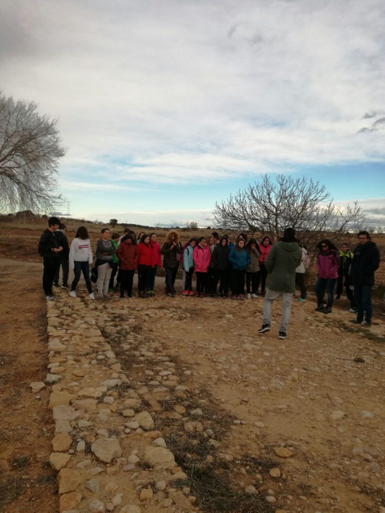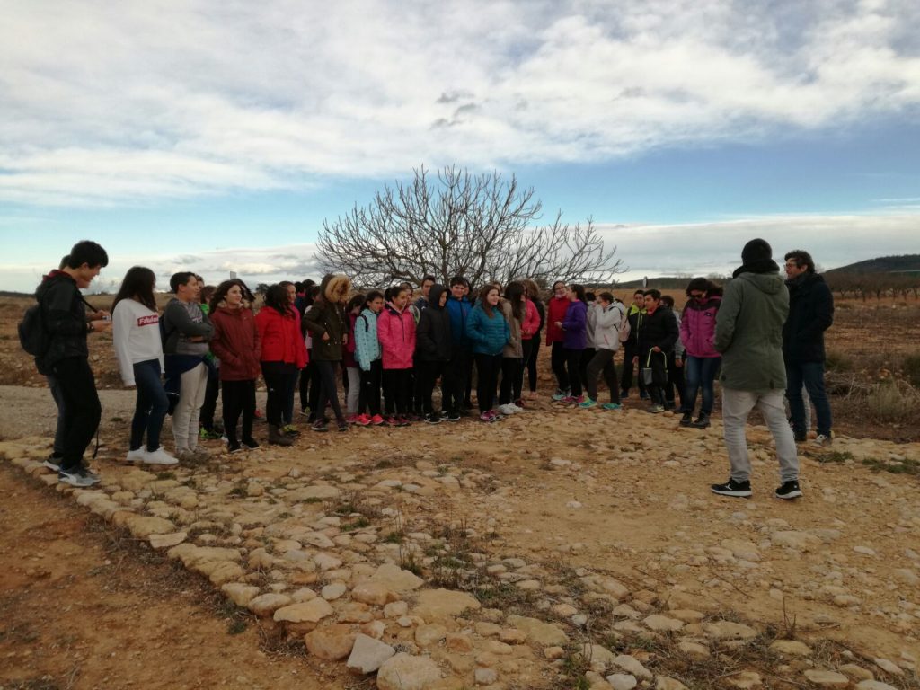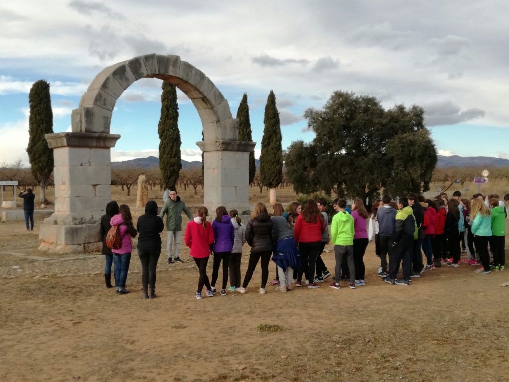 Xiquetes i xiquets de l’Institut d’Educació Secundària IES de Vilafranca del Cid visiten la Via Augusta i l’Arc romà, a la vegada que gaudeixen de l’explicació de Raül Mateu, historiador de l’Ajuntament de Benlloc.